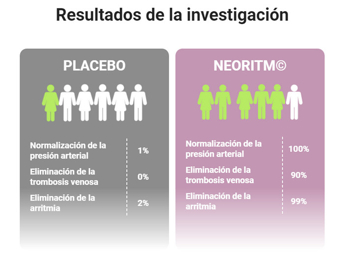 La alta eficiencia del producto Neoritm se debe en gran parte al amplio espectro de influencia sobre el problema.