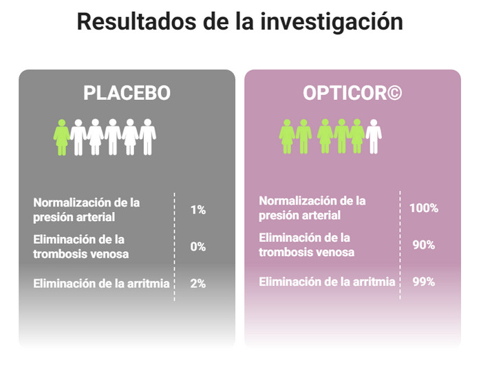 Opticor diseñado para la restauración compleja del sistema circulatorio en el desarrollo de la hipertensión. Tiene un efecto eficaz sobre la insuficiencia cardiaca, el deterioro de la salud (dolores de cabeza y malestar general), la aparición de aterosclerosis (la principal causa de los accidentes cerebrovasculares) y otras consecuencias de la hipertensión arterial. El producto puede ser utilizado por personas de cualquier edad e independientemente de la etapa de desarrollo de la hipertensión. Más efectivo también debido a la ausencia de efectos secundarios.