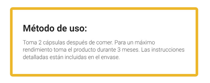 Se sentirá mejor en los próximos 10 a 15 minutos. Pero para el desarrollo de un efecto duradero, es necesario continuar el curso. En caso de salida, simplemente llévese las pastillas y respete el horario de toma establecido.