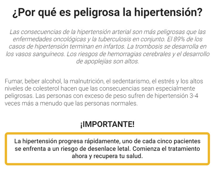 ¿Se siente a menudo mimado debido al aumento de la presión? Las cápsulas únicas Opticor ayudarán a estabilizar el rendimiento y mejorar la salud. Nivelan suavemente la condición del paciente y ayudan a lograr una remisión a largo plazo. El corazón y los vasos sanguíneos dejarán de funcionar por desgaste y volverán a su funcionamiento normal. Y si los factores negativos anteriores (desde los cambios climáticos hasta el estrés) a menudo causaron ataques de hipertensión, ahora su vida se volverá más mesurada y predecible.