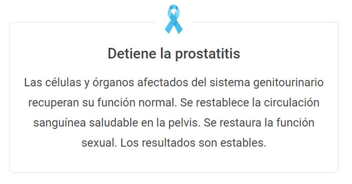 - Mejora la circulación sanguínea, prolonga la fase de remisión en la prostatitis crónica.