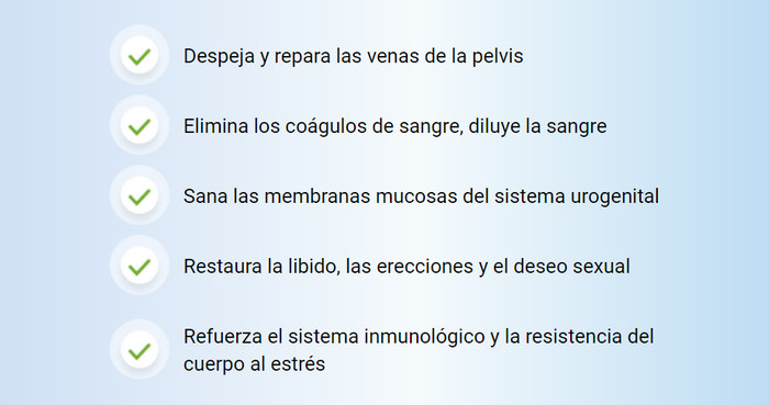 - Fortalece las paredes de los capilares del sistema genitourinario, elimina los trastornos eréctiles.
