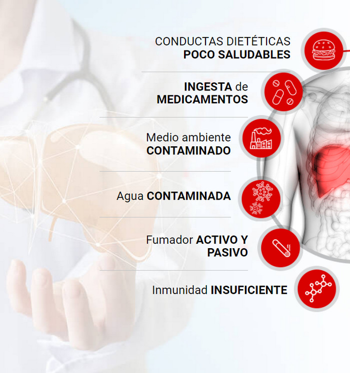 El hígado es un gran órgano glandular cuyas funciones incluyen la descomposición de los glóbulos rojos, la síntesis de proteínas plasmáticas, la producción de hormonas, la secreción de bilis y la conversión de azúcares en glucógeno, que almacena. El hígado también es responsable de convertir muchas vitaminas y nutrientes en una forma que pueda ser utilizada por el cuerpo, así como de desintoxicar varias sustancias. La vida moderna incluye la exposición diaria a sustancias que son tóxicas para nuestro cuerpo, lo que supone una gran carga para el hígado. Por lo tanto, un hígado sano es fundamental para una buena salud. Ciertos riesgos del estilo de vida y condiciones médicas aumentan la importancia de mantener una función hepática normal.