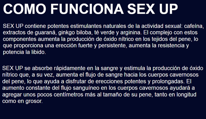 Veamos qué es Sex UP, cómo funciona el producto, para que sirve, cuáles son sus beneficios frente a los análogos que no funcionan, cómo usar Sex UP según las instrucciones de uso, donde la venden Sex UP en Argentina y cuál es su precio, y también analicemos testimonios, comentarios y opiniones reales sobre Sex UP en los foros.
