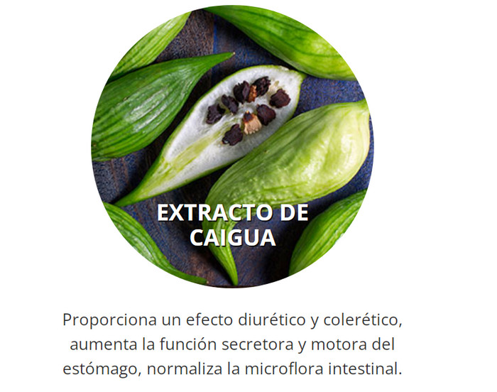 - Elimina el constante deseo de comer, reduce la cantidad de grasa corporal, impide la rápida absorción de grasas.