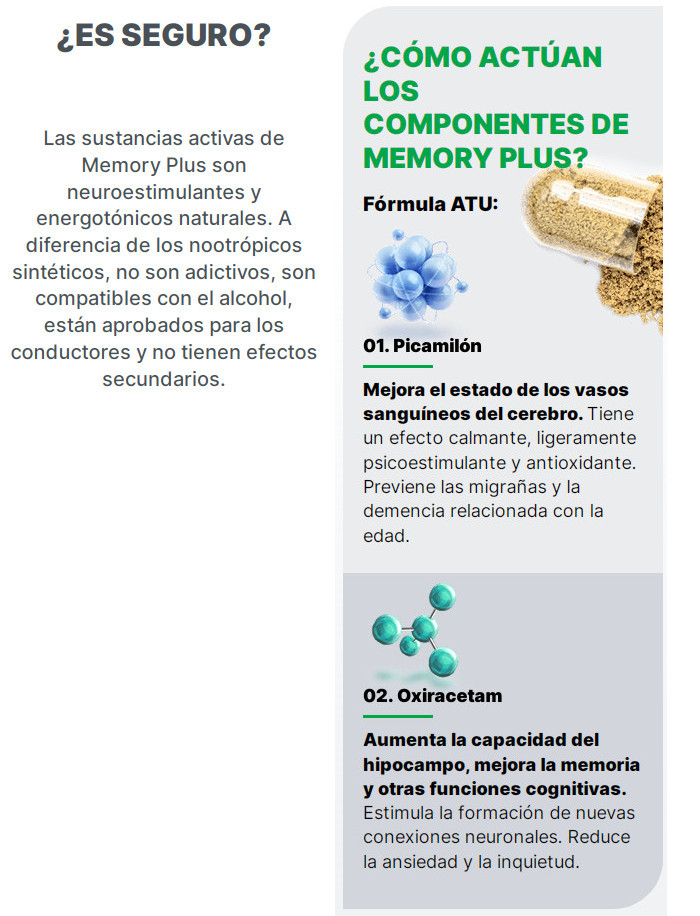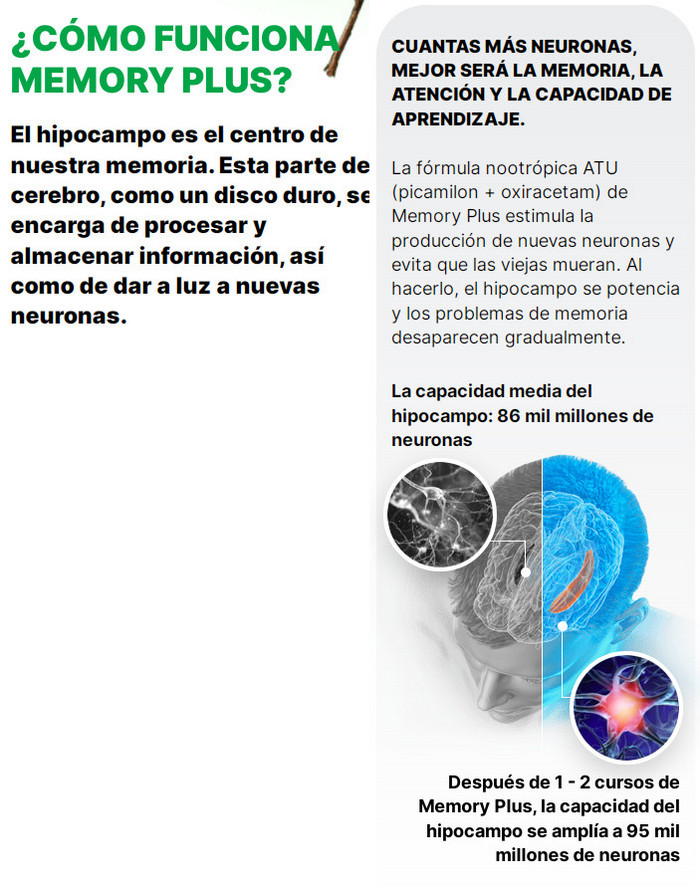 El nuevo mejor fármaco de múltiples ingredientes Memory Plus, que combina con éxito los últimos avances científicos, por primera vez ofrece un apoyo integral para el cerebro. Infórmate de qué es Memory Plus, cómo usar las cápsulas, cuál es su dosificación, cuánto precio en Peru y donde comprar el producto original, donde la venden y lee las testimonios, comentarios y opiniones en los foros para asegurarte de que Memory Plus realmente funciona.