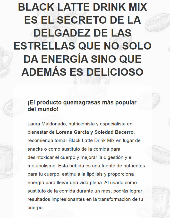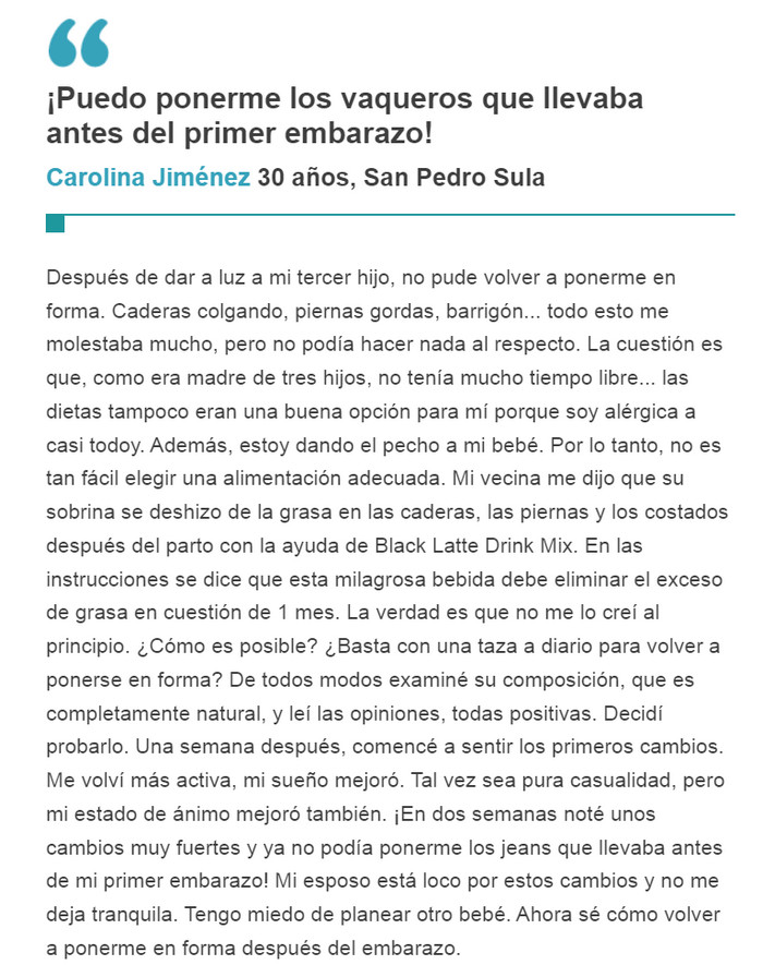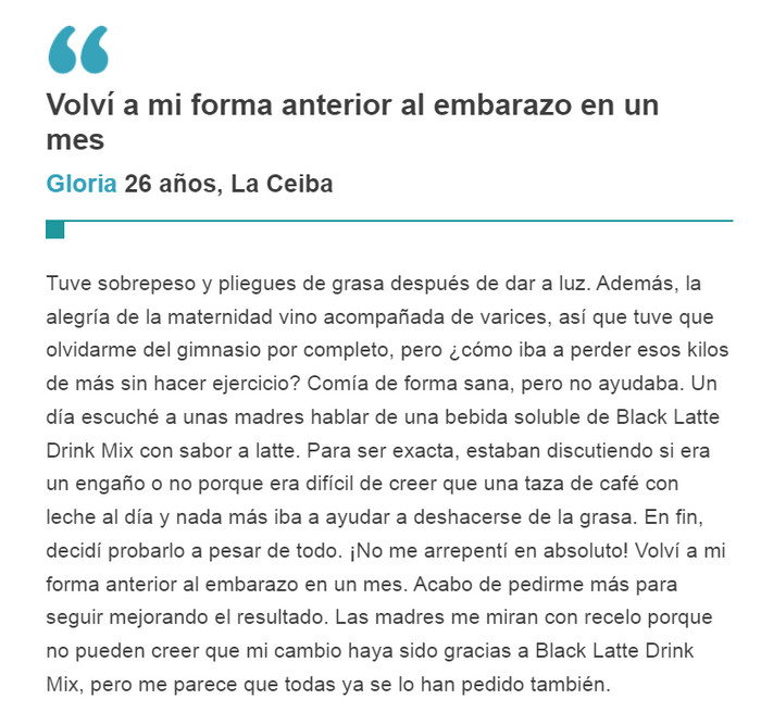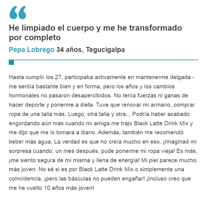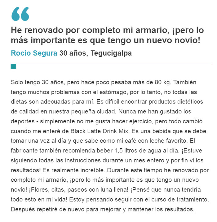 Black Latte ingredientes, comentarios, uso de, Honduras, riesgos de