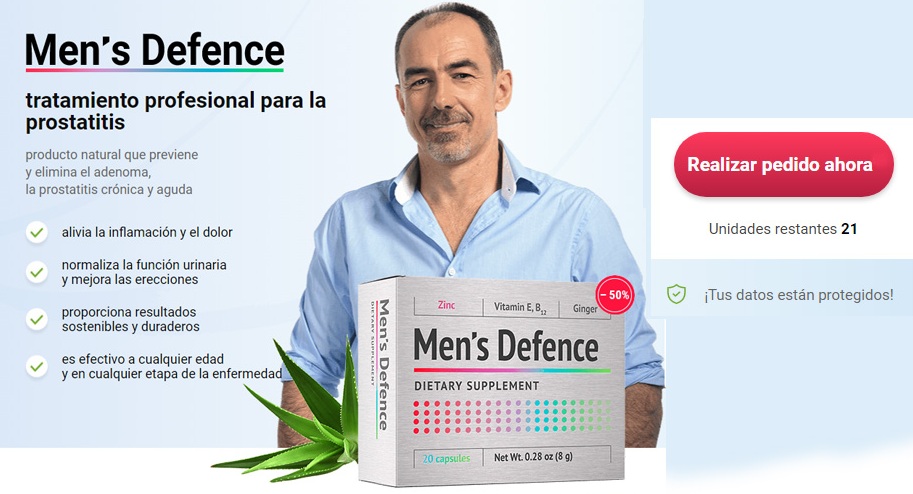 Un nuevo producto para la salud de la próstata es un desarrollo muy intrigante. Men’s Defence se vende en forma de cápsulas, por lo que debe tomarse por vía oral. Las cápsulas Men’s Defence son el único producto natural que puede eliminar eficazmente los síntomas de la prostatitis, la hiperplasia prostática y la hipertrofia prostática. Su fórmula única contribuye a normalizar las funciones de la próstata y promueve una mejor inmunidad, fortalece los riñones y mejora la potencia sexual. Las cápsulas contienen aceites esenciales y extractos de plantas medicinales que tienen un potente efecto antimicrobiano en el organismo.