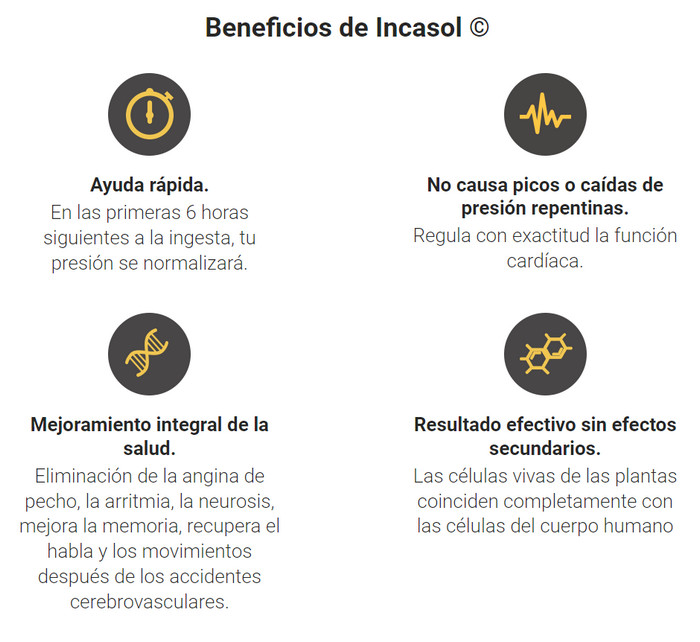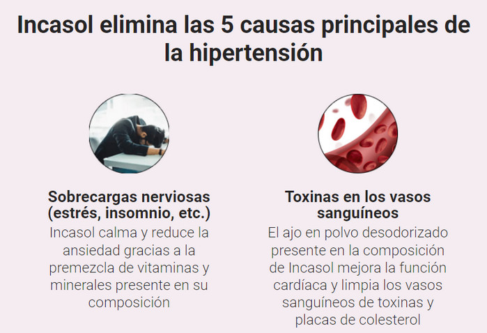 La hipertensión arterial es una prueba real, porque su curso se acompaña de dolores de cabeza y mareos, nerviosismo, puntos negros ante los ojos, palpitaciones del corazón y muchos otros problemas. El producto antihipertensivo Incasol detiene el desarrollo de la enfermedad e inicia el proceso de curación: