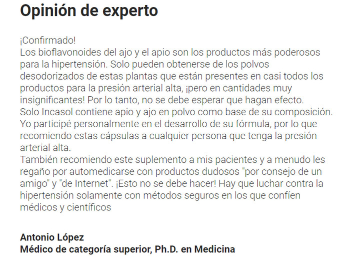 Cuando los pacientes hipertensos se encuentran ante información sobre la eficacia de Incasol, muchos tienen dudas: ¿se trata de un divorcio o de un producto que realmente tiene un efecto beneficioso sobre el sistema cardiovascular y reduce la hipertensión arterial?