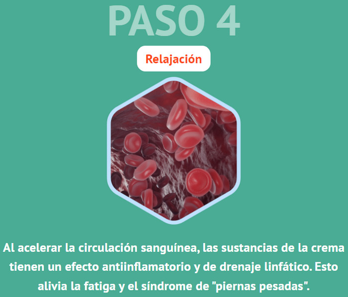 - Estimulante. La salida de sangre de las piernas se normaliza, las válvulas venosas se fortalecen.