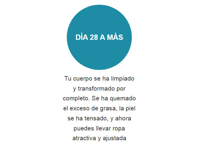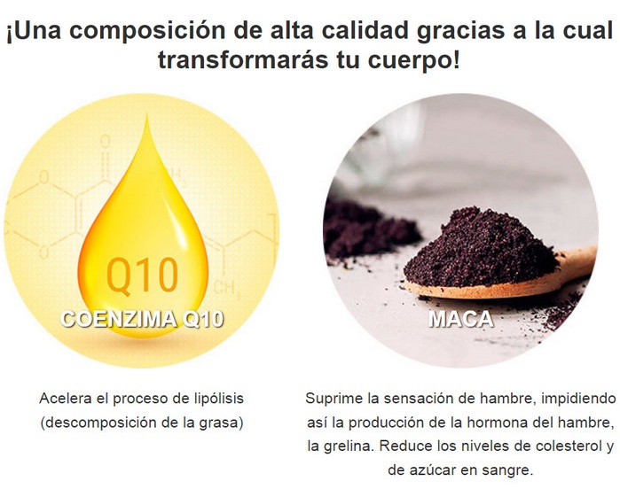 La gran ventaja de las cápsulas es su capacidad para derretir la grasa visceral, la que se deposita en la cavidad abdominal alrededor de los órganos internos, lo que dificulta su trabajo y representa una grave amenaza para la salud. Este producto no se puede comprar en una farmacia, solo se puede pedir en Internet, por lo que hay que tener cuidado y no confiar en los estafadores que, bajo la apariencia de píldoras milagrosas, venden una falsificación común y corriente. El aditivo destruye eficazmente los depósitos en las llamadas áreas problemáticas: las caderas, el abdomen y las nalgas, haciendo que la silueta sea esbelta y tonificada. Lo principal es que puedes ajustar tu dieta sin forzarte ni hacer esfuerzos titánicos.