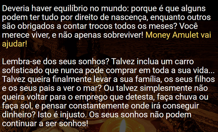 Vamos dar uma olhada no o que é Money Amulet, para que serve, como funciona o talismã, quais são suas vantagens, como usar Money Amulet de acordo com as instruções de uso, onde comprar Money Amulet, como encomendar e qual seu preço no Brasil, além de analisar opinião, comentários e opiniões sobre Money Amulet nos fórums.