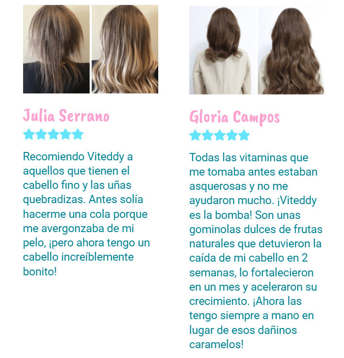 Viteddy de las revisiones de pérdida de cabello recogidas positivas. Además del hecho de que el cabello dejó de caerse, las chicas notaron: