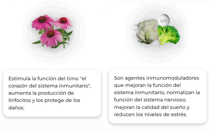 InmuneGuard mejora la actividad del sistema pituitario, activa el sistema inmunológico, reduce la descomposición del cortisol en el hígado y, por lo tanto, reduce la carga en las glándulas suprarrenales.