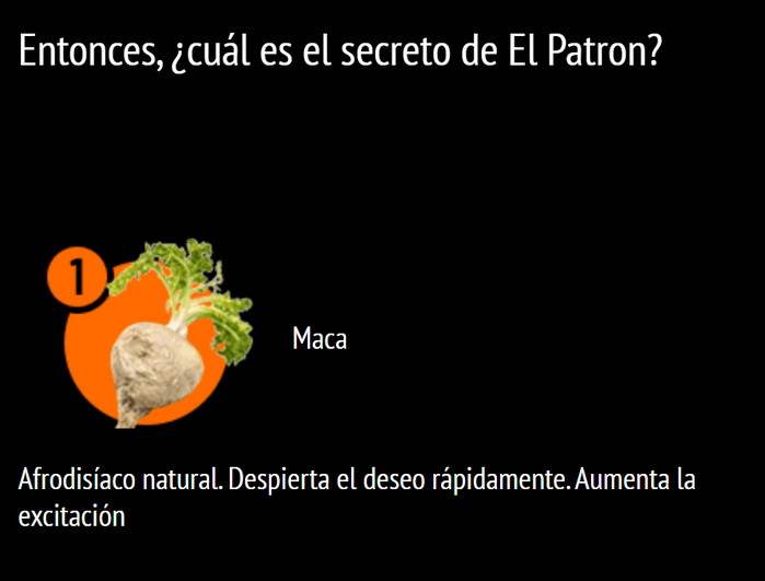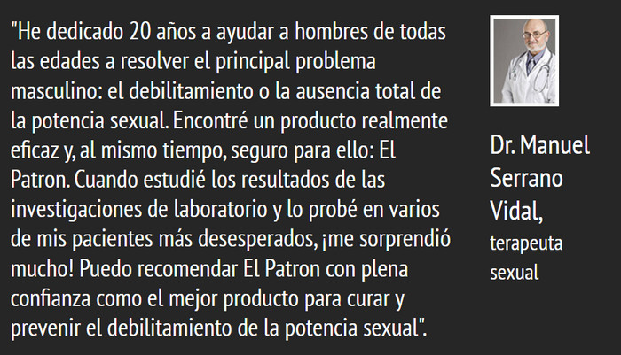 Entre medios similares para la potencia, Patron se destaca por su composición natural, resultados rápidos, precio razonable. Tiene un efecto complejo en el cuerpo masculino: