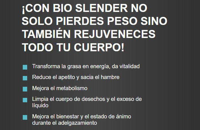 El fabricante Bio Slender indica las siguientes propiedades del medicamento en la anotación: