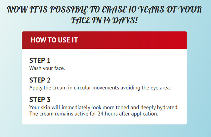 Regular use of the cream will give you a lot. First of all, it should be recognized that natural ingredients act depending on the use. With each day of application, the skin condition will become better. If you simply stop using after the first days of betting, the effect will not be complete. The serum has no side effects.