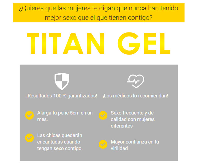 En este artículo podrás conocer qué es Titan gel, cómo funciona el producto, cuáles son sus beneficios, para qué sirve, cómo usar Titan gel según las instrucciones de uso, donde comprar Titan gel, donde la venden en y cuál es su precio. También en los foros puedes leer testimonios, comentarios y opiniones reales sobre Titan gel.