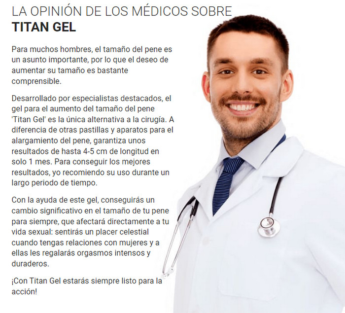 Antes de aplicar Titan gel sobre la piel, se recomienda leer las instrucciones de uso. Indica las siguientes características del uso de la droga: