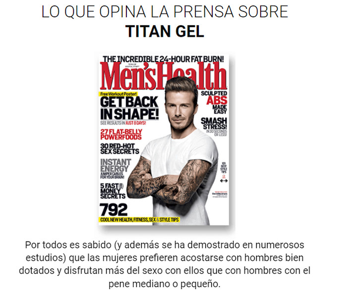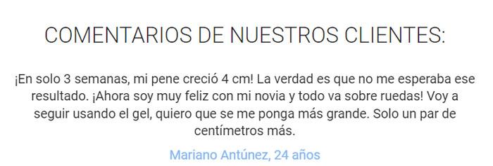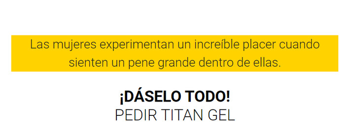 El tamaño modesto del pene no es una oración en absoluto ni una razón para poner fin a la vida personal. La longitud y el ancho del órgano principal masculino se pueden aumentar usando Titan gel. Recientemente se desarrolló una herramienta única, pero en términos de éxito ya ha superado a los análogos más conocidos. A un bajo costo, el producto le permite lograr resultados que solo una costosa cirugía plástica puede brindar. Otras opciones poco seguras, como las bombas o las pastillas de las farmacias, también están perdiendo relevancia rápidamente, incapaces de competir con un rival poderoso.