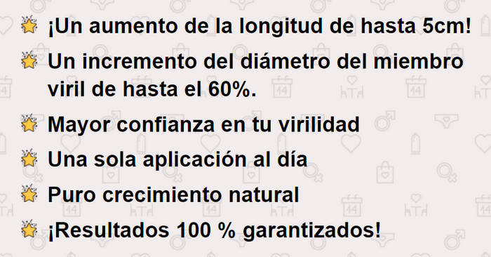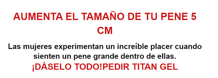 ¿No está seguro de sus posibilidades íntimas debido al pequeño tamaño del pene? Deseche el pánico y los pensamientos sobre la cirugía, porque hoy hemos desarrollado una solución segura para su problema: ¡Titan Gel para agrandar el pene! La herramienta única proporciona un aumento en el tamaño de la virilidad, aumenta la potencia, la libido, tiene efectos antiinfecciosos y antiinflamatorios, y también actúa como lubricante.