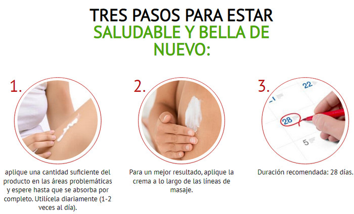 Se recomienda aplicar la crema en el área afectada en una capa uniforme 1-2 veces al día durante 4 semanas. Esta es la única forma de obtener un resultado garantizado del uso del producto durante el período de recuperación.