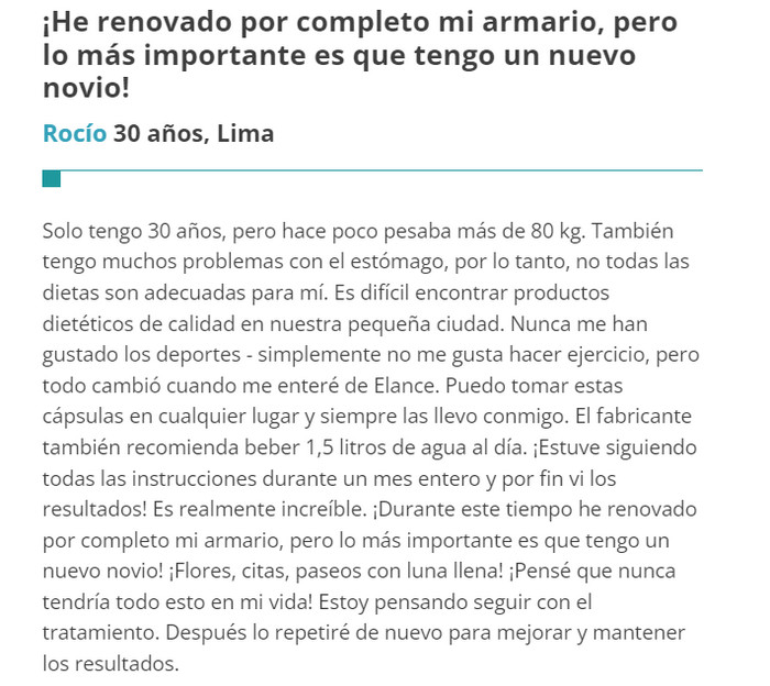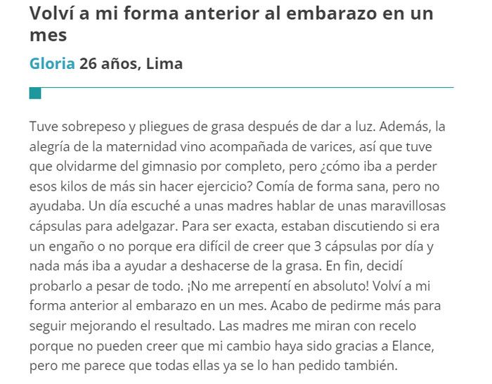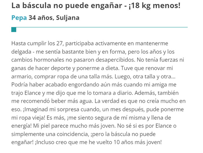 Elance comentarios, ingredientes, uso de