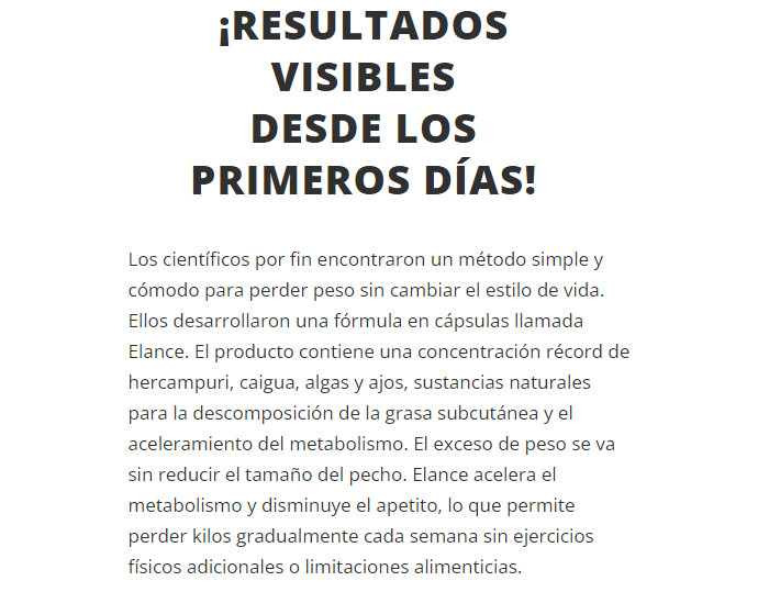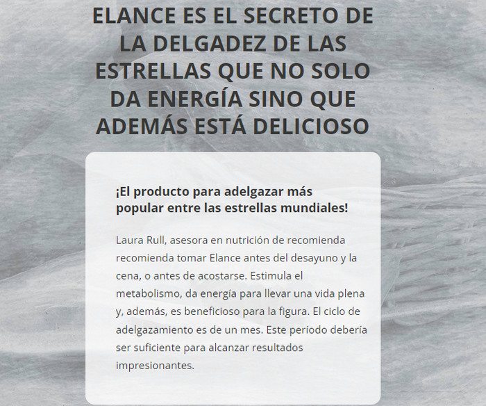Elance – esta es exactamente la manera fácil de perder peso que casi todo el mundo está buscando. El producto le permite obtener una figura delgada y mantenerla sin ningún esfuerzo. Este es literalmente un descubrimiento revolucionario en el campo de la salud.