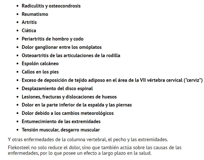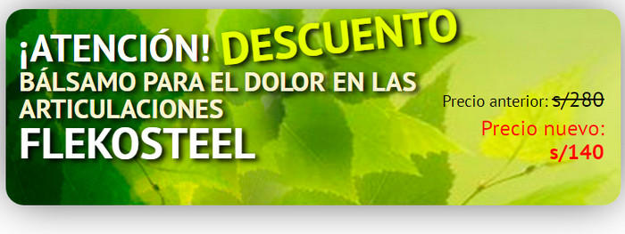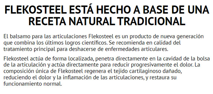 Para curar una articulación enferma o ralentizar los cambios degenerativos relacionados con la edad, Flekosteel. Tiene una composición natural y está disponible en cómodos envases. Y con el uso adecuado, el medicamento ayudará a olvidarse de los problemas.