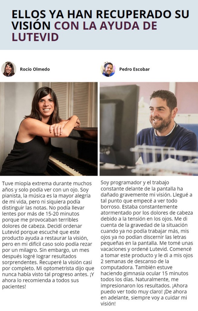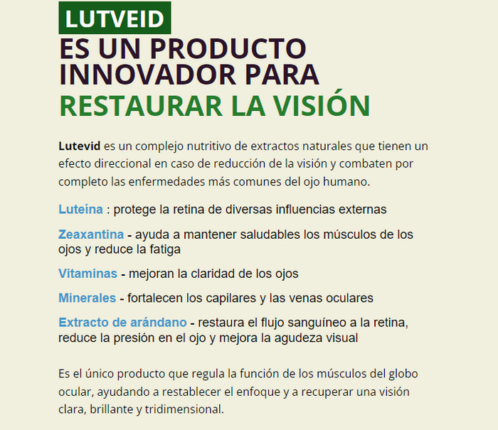 La composición orgánica de la droga Lutevid le permite restaurar rápidamente la visión. Después del curso Lutevid podrás tirar tus gafas y lentillas porque ya no las necesitarás.