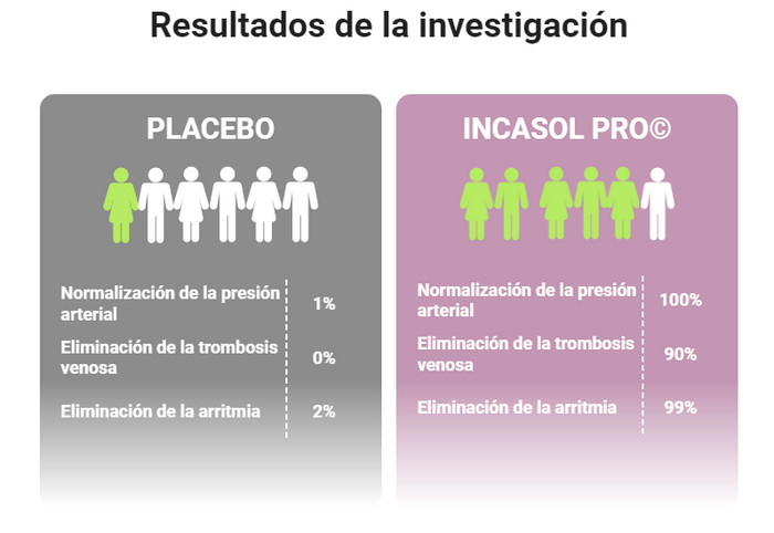 Un solo uso de cápsulas Incasol PRO reduce la presión, pero el nivel normal no durará mucho. Y el efecto acumulativo da lo que necesitan los pacientes hipertensos: estabilización constante de la presión arterial.