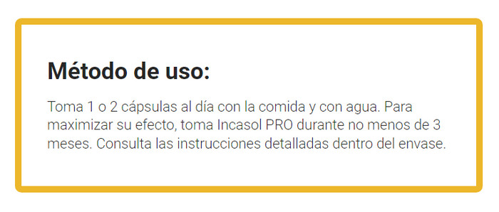 En las instrucciones de uso Incasol PRO se recomienda seguir las reglas para tomar el medicamento.