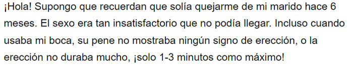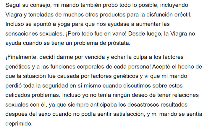 Por lo tanto, la herramienta no sobrecarga los sistemas del cuerpo principal y resuelve con gran eficiencia el problema principal, junto con problemas adicionales. Dándole tu preferencia, aumentarás la calidad de vida sexual al máximo nivel.