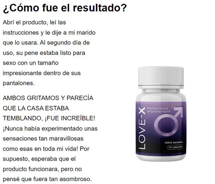 Analicemos qué es Love-X, cómo funciona el producto, cómo usar Love-X según las instrucciones de uso, donde la venden cápsulas y cuál es su precio en Peru, y analicemos testimonios, comentarios y opiniones sobre Love-X en foro.