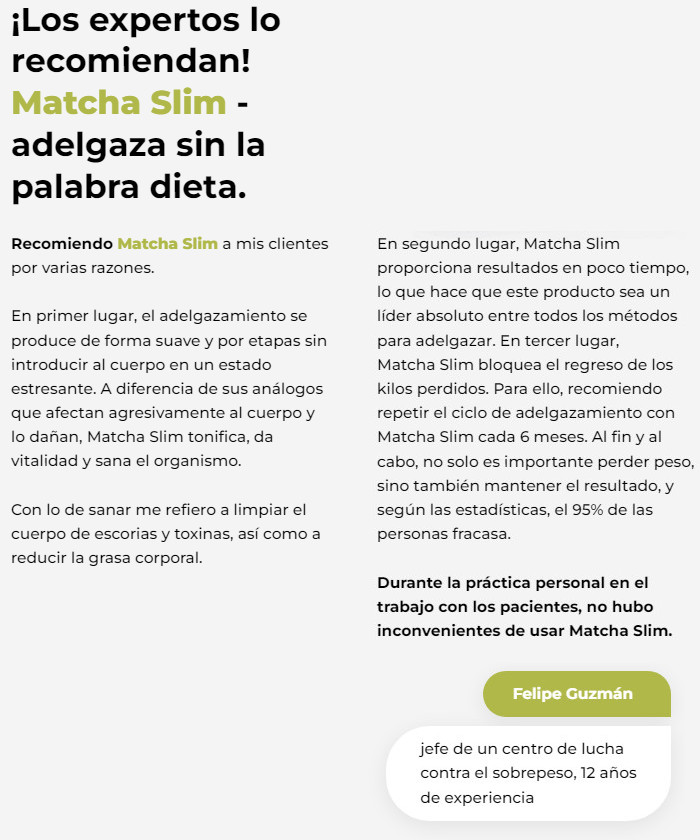 Matcha Slim para bajar de peso tiene una gran demanda, lo que demuestra su eficacia. Muchas personas que han logrado experimentar el efecto de la droga en sí mismas comparten sus opiniones en foros dedicados a los problemas de exceso de peso, escriben reseñas en el pagina oficial del fabricante. También recibimos cartas de clientes agradecidos.