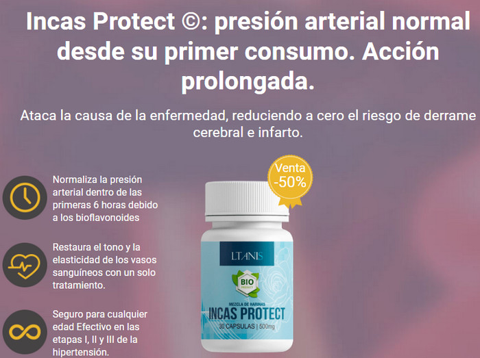La droga Incas Protect es un remedio 100% natural, que cada vez más personas en diferentes países del mundo están tratando de comprar. Después de todo, cada cápsula contiene un complejo de ingredientes exclusivamente naturales que ayudan a vencer la hipertensión, sin el menor daño para la salud y los efectos secundarios. La singularidad de Incas Protect es que: