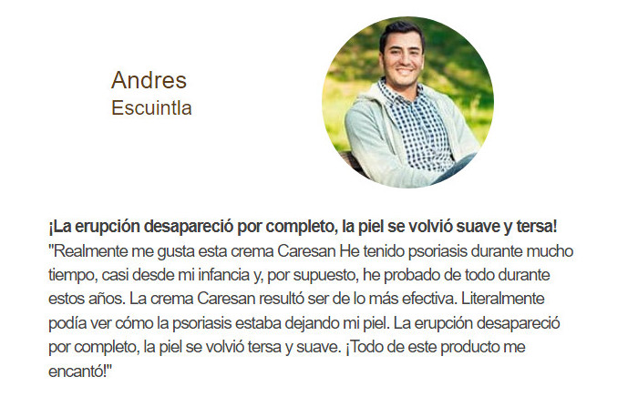 ¿Tu piel está cubierta de descamaciones, pápulas, rojeces, pústulas causadas por la psoriasis? ¡No se demore con un tratamiento efectivo, de lo contrario, tal dolencia pronto dominará su vida! El uso de la crema Caresan es el nuevo estándar de oro en el tratamiento de esta condición. La crema tiene las siguientes ventajas: