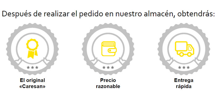 ¿No encontraste esta crema en las farmacias, entonces te preguntas dónde comprarla Caresan? Le informamos que el medicamento se vende sin receta solo en el pagina oficial. Si la pide aquí, se asegurará de obtener una crema auténtica, eficaz y segura a un precio asequible. Si desea comprar una crema más barata, haga un pedido durante el período de ofertas promocionales. Una ventaja valiosa para el pedido es la consulta proporcionada con un especialista. Un representante certificado le explicará el uso del medicamento y sus beneficios. El uso de dicho servicio no obliga a una persona a realizar una compra de la crema.
