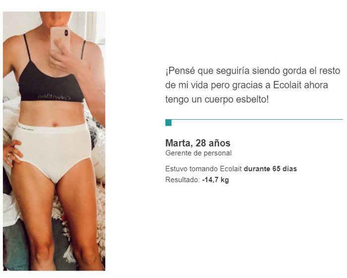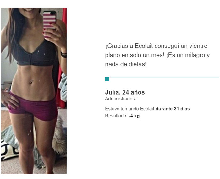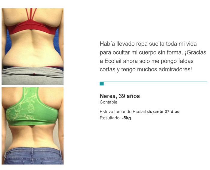 Ecolait es un remedio complejo, por lo que tiene un efecto tan fuerte. Cada componente por separado afecta los procesos metabólicos o las reacciones bioquímicas del cuerpo. Pero en combinación, tienen un efecto activo que contribuye a la pérdida de peso.