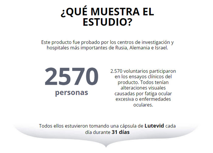 Antes de salir a la venta, el medicamento Lutevid pasó con éxito todas las pruebas de prueba, lo que atestiguó su alta eficiencia y seguridad. De acuerdo con los resultados de un experimento significativo sobre la base de uno de los institutos de investigación, en el que participaron 13.200 personas, el uso de la herramienta da una buena dinámica en los siguientes puntos:
