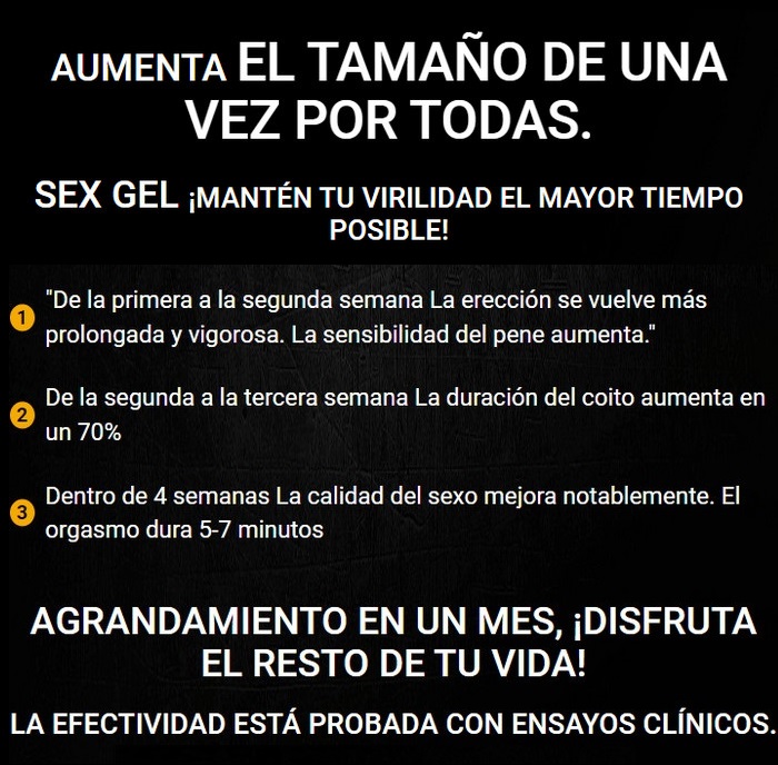 El sueño de aumentar el tamaño de su hombría hasta 7 cm, sin cirugía, daños a la salud y el efecto de la adicción, ¡ahora se ha hecho realidad! Basta con usar el gel Sex Gel que, a diferencia de varios análogos ofrecidos por las farmacias ucranianas, actúa de manera compleja, cura el cuerpo masculino y proporciona un resultado positivo estable y prolongado.