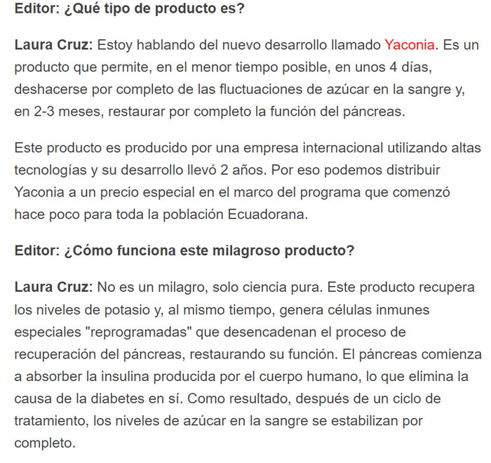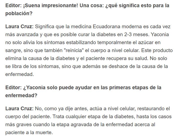El material del artículo lo ayudará a comprender qué es Yaconia, cómo funciona el producto, cómo usarlo de acuerdo con las instrucciones de uso, cuáles son las ventajas del producto sobre los análogos, donde comprar Yaconia, donde la venden y cuál es su precio en Ecuadors. Testimonios, comentarios y opiniones sobre Yaconia en los foros.