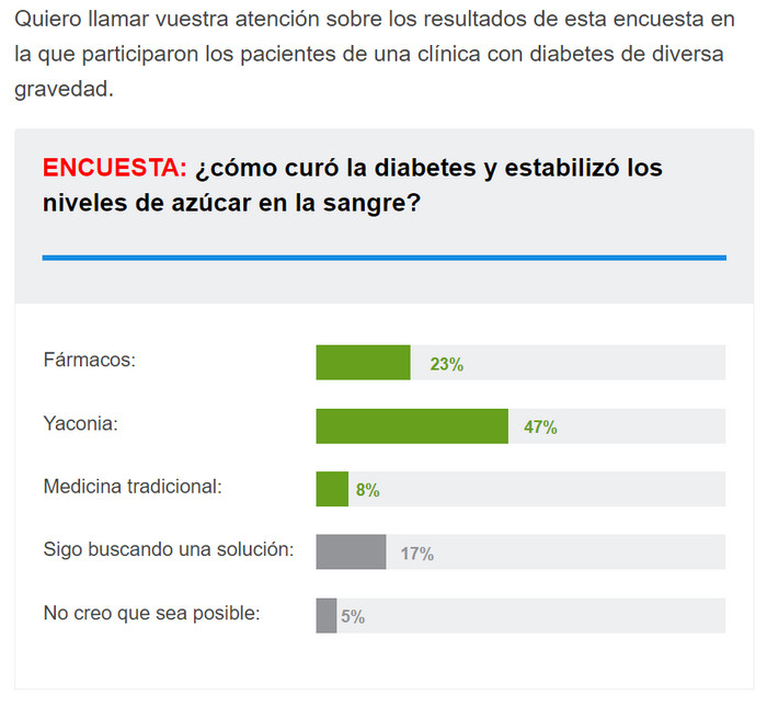 Uso de Yaconia – cápsulas para la diabetes diseñadas para proteger su cuerpo de la diabetes (así como para eliminar las causas y manifestaciones del problema). Deje de limitarse en el modo de vida y nutrición, tome diferentes pastillas y tinturas. Solo 1 remedio reducirá la concentración de azúcar en la orina y la sangre, ayudará a eliminar el colesterol. La droga combate no solo los síntomas de la enfermedad, sino que también elimina su causa. El medicamento para la diabetes Yaconia es igualmente eficaz en la diabetes tipo 1, así como en la diabetes tipo 2, la diabetes en el embarazo y en el tratamiento de «otros tipos específicos de diabetes».