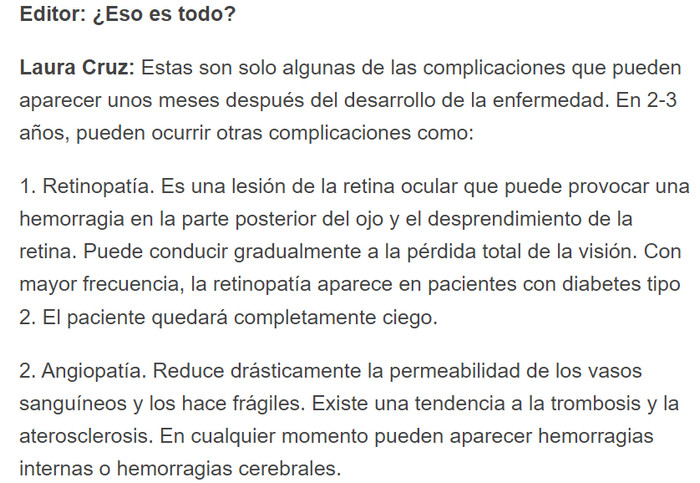 La diabetes mellitus es una enfermedad común que se desarrolla como resultado de una alteración en la captación de glucosa. Las consecuencias de la enfermedad provocan un mal funcionamiento de todos los sistemas del cuerpo.