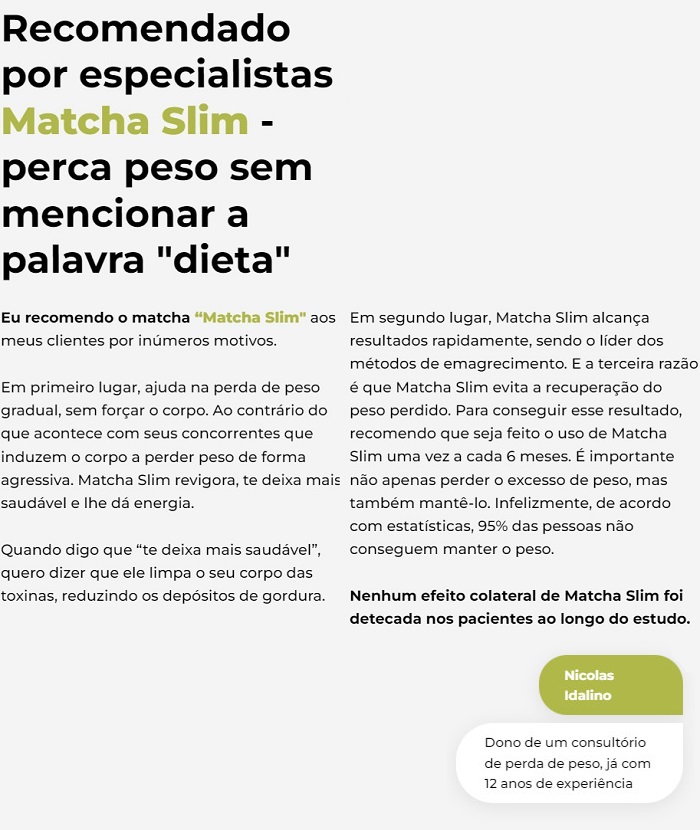 Matcha Slim ingredientes, como funciona, efeitos da, opinião