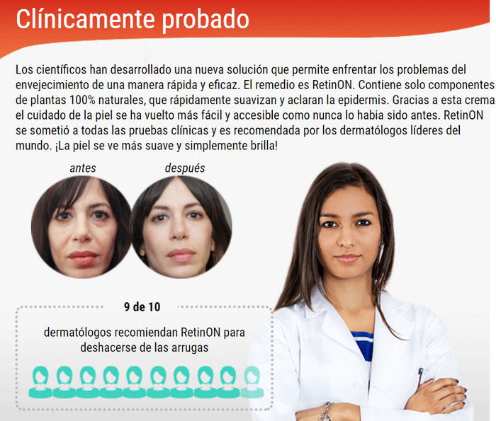 La información sobre qué es RetinON, cómo funciona, cómo usarlo de acuerdo con las instrucciones, así como donde comprar RetinON, donde la venden y cuál es su precio en Peru está en el sitio web oficial, pero también puede leer sobre esto en el artículo abajo. También en los foros puedes leer testimonios, comentarios y opiniones sobre RetinON.