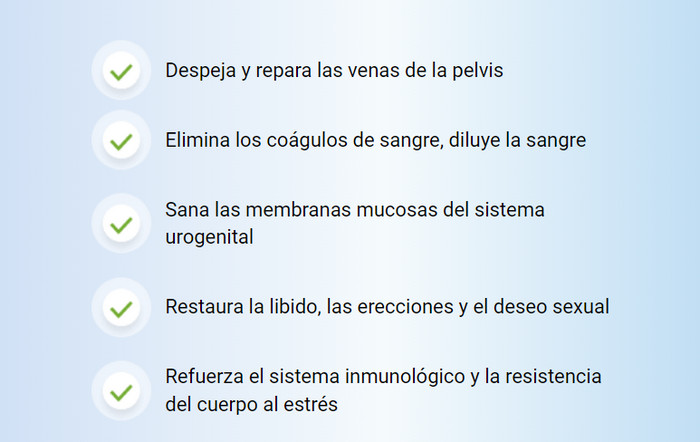 - Como resultado de la activación del flujo sanguíneo y la microcirculación, se restauran los procesos metabólicos en los tejidos, la síntesis de hormonas sexuales y líquido seminal: aumenta el deseo sexual de un hombre, aumenta la erección, las sensaciones durante el sexo se agravan.