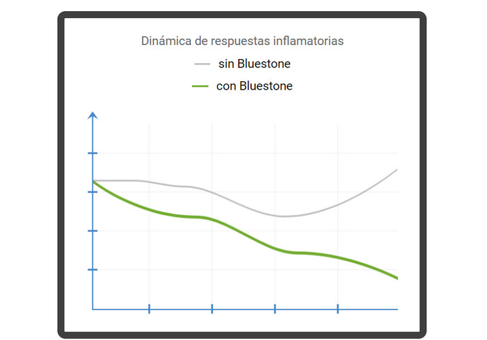 Debido a la composición natural multicomponente, el medicamento Bluestone actúa sobre cada síntoma de la enfermedad al influir en el mecanismo de su aparición. En combinación con un potente efecto antiinflamatorio, regenerador e inmunoestimulante, esto hace que Bluestone sea el fármaco más eficaz para la inflamación crónica de la próstata.