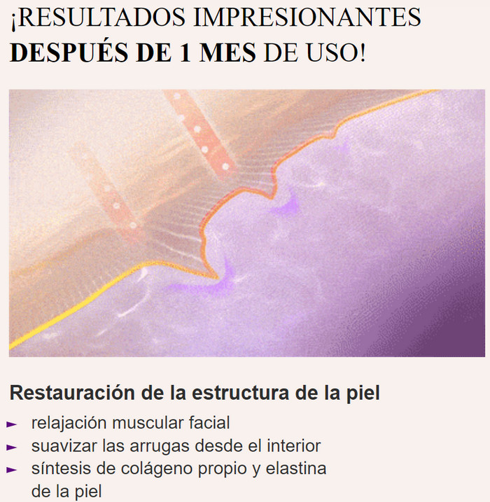 - Se mejora la formación de fibras de colágeno y la eliminación de los cuerpos elásticos dañados, por lo que la elasticidad de la piel aumenta gradualmente, el óvalo de la cara se restaura y se vuelve más claro.